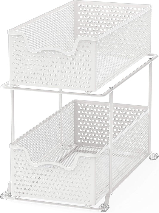 Simple Houseware 2 Tier Sliding Cabinet Basket Organizer Drawer, White