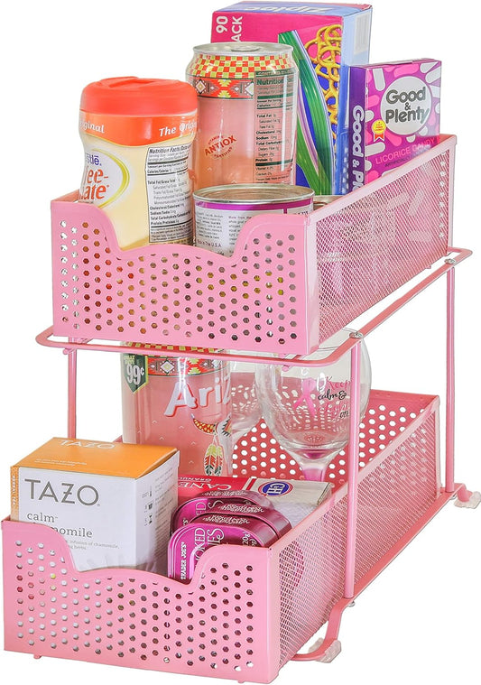 Simple Houseware 2 Tier Sliding Cabinet Basket Organizer Drawer, Pink