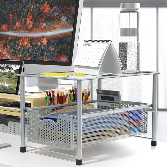 Simple Houseware 2 Tier Sliding Cabinet Basket Organizer Drawer, Silver