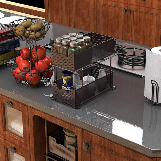 Simple Houseware 2 Tier Sliding Cabinet Basket Organizer Drawer, Bronze