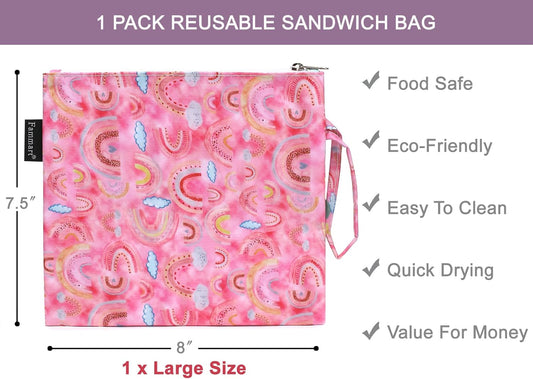 Reusable Sandwich Bag/Snack Bag for Kids & Adults, Dual Layer Lunch Bag with Handle, Washable, Food Safe, BPA Free (1-Pack, Rainbow)
