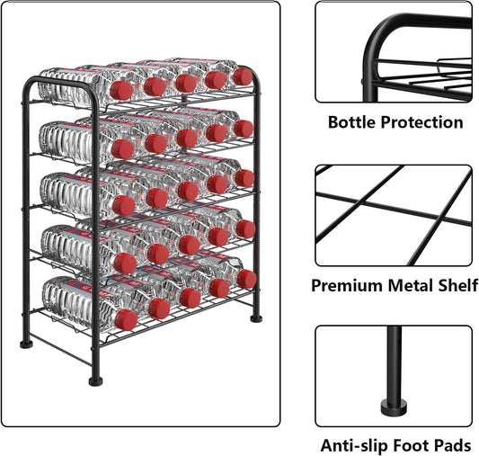 Water Bottle Organizer 5 Tier FreeStanding Water Bottle Storage Rack Metal Beverage Can Dispenser for Pantry, Kitchen Cabinet Countertop, Black