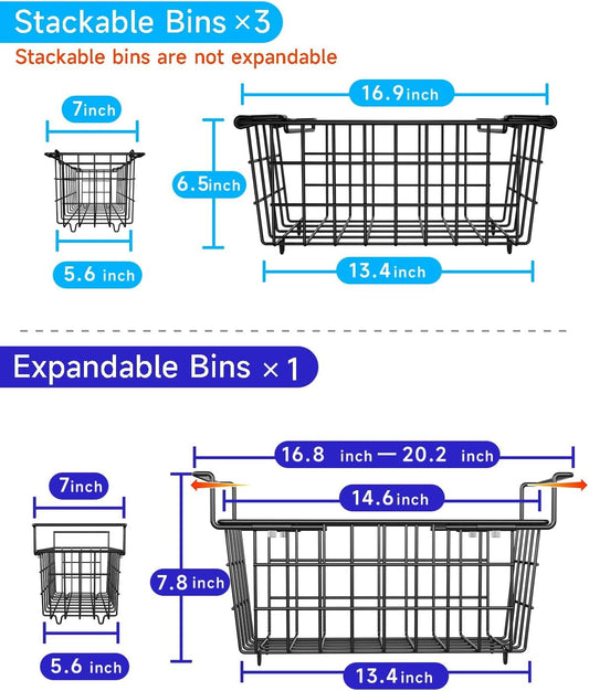 Stackable Freezer Organizer - Expandable Bin*1 + Stackable Bins*3 for Chest & Upright Freezers