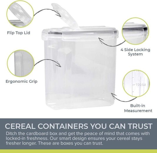 Simply Gourmet Airtight Cereal Containers with Lids – 4 Piece Tall Kitchen Pantry Organization Set, BPA-Free Clear Plastic, Pour Spout Lids for Breakfast Cereal, Rice, Flour, Sugar, Snacks