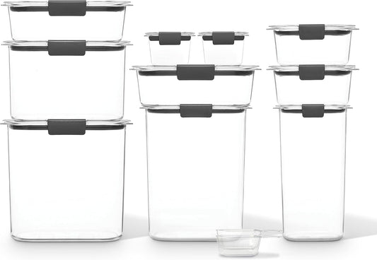 Rubbermaid Brilliance 14-Piece Food Storage Container Set with Scoops Airtight BPA-Free for Kitchen and Pantry Organization
