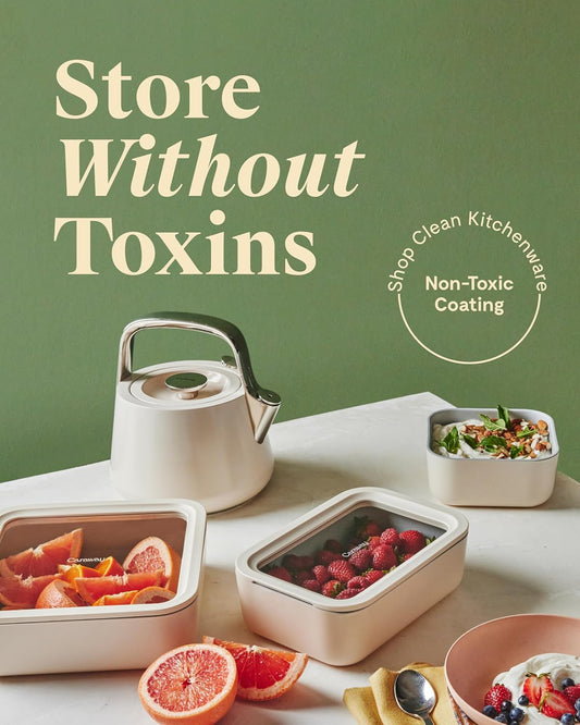 Caraway 25pc Glass Food Storage Set - Glass Storage Containers for Food - Non-Toxic Ceramic-Coated Glass - Air Release Technology - Compact & Stackable Design - Perracotta