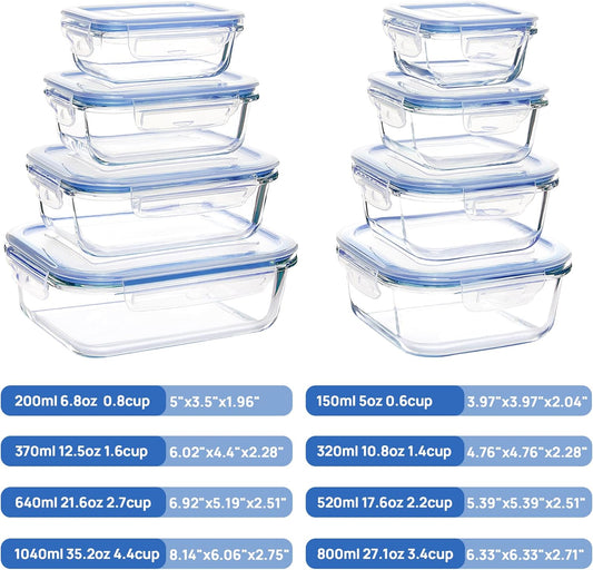 Vtopmart 8 Pack Glass Food Storage Containers with Airtight Lids, Glass Meal Prep Containers, Lunch Office Meal for Microwave, Oven, Freezer and Dishwasher, BPA Free