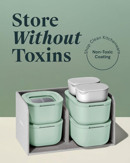 Caraway Mini Food Storage 11pc Set - Glass Storage Containers for Food - Non-Toxic Ceramic-Coated Glass - Air Release Technology - Compact & Stackable Design - Sage