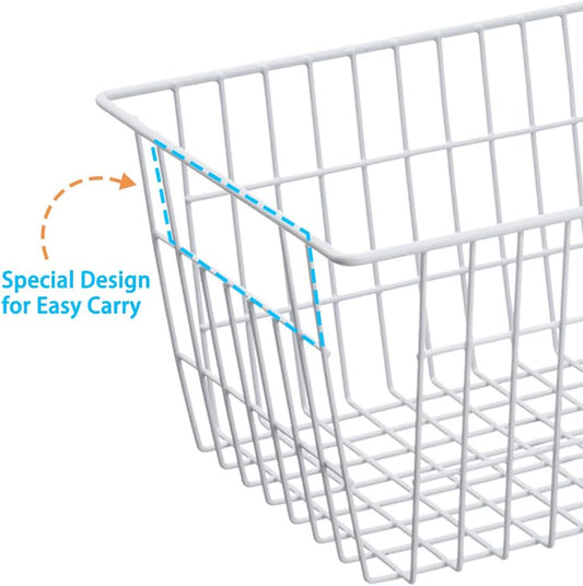 14" Upright Freezer Storage Baskets, White Wire Storage Bins Large Bakset for Freezer, Pantry, Bathroom Organizing, Set of 4
