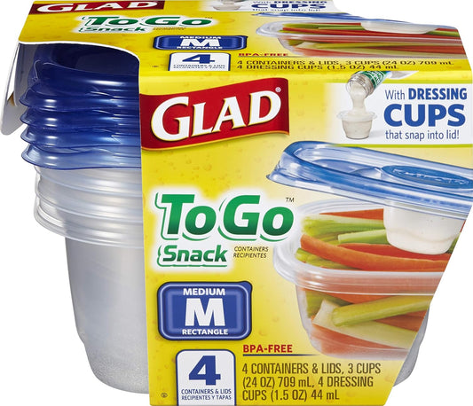 GladWare To Go Snack Food Storage Containers, Medium Rectangle Holds 24 Ounces of Food, 4 Count Set | Tupperware, Plastic Food Container, Meal Prep Container, Plastic Containers with Lids