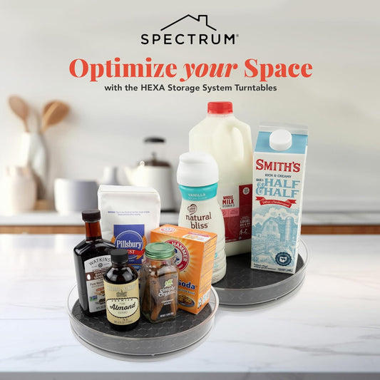 Spectrum Lazy Susan Organizer, Hexa Round Medium (2-Pack) - Lazy Susan Turntable for Cabinet, Refrigerator, Pantry, Table, & Shelf - Rotating & Spinning Pantry Organization & Storage for Fridge