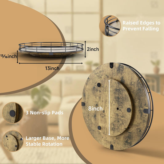 Lazy Susan Turntable Organizer for Table Top, 13’’ Round Wooden Lazy Susan for Cabinet Kitchen Countertop Pantry Dining Coffee Table for Condiments Spices, Rustic Bathroom Vanity Tray for Soap Candle