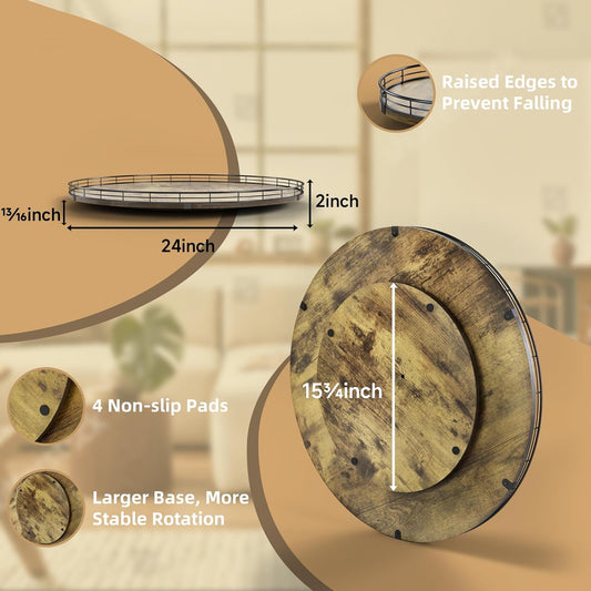 Lazy Susan Turntable Organizer for Table Top, 24’’ Round Wooden Lazy Susan for Cabinet Kitchen Countertop Pantry Dining Coffee Table for Condiments Spices, Rustic Bathroom Vanity Tray for Soap Candle