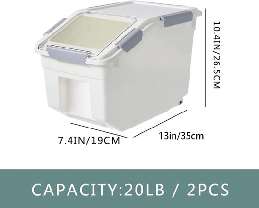 20Lbs 2 Pack Food Storage Container with Scoop, Airtight Rice Storage Bins Flour Containers Pet Food Dispenser with Handle & Wheels, Plastic Kitchen Pantry Organization for Cereal Baking Supplies