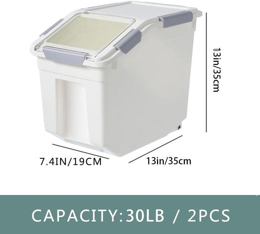 30Lbs 2 Pack Food Storage Container with Scoop, Airtight Rice Storage Bins Flour Containers Pet Food Dispenser with Handle & Wheels, Plastic Kitchen Pantry Organization for Cereal Baking Supplies