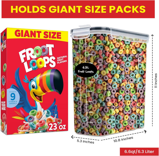 DWËLLZA KITCHEN Extra Large Cereal Containers Storage 6.3L - 213 fl. oz - 2 Pc Family Size Cereal Dispenser Countertop, Bulk Airtight Food Storage Containers for Pantry Organization Labels and Marker