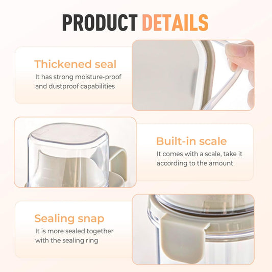 5.5 Lbs Rice Airtight Dry Food Storage Container Set of 4, Rice Storage Bin Cereal Containers Dispenser, Thicken Plastic Clear Food Storage Box with Pouring Spout, Measring Cup for Grain, Flour Snacks