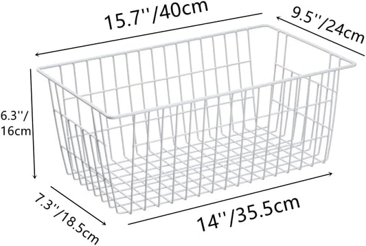 SANNO 14" Freezer Baskets Wire Storage Baskets for Organizing Pantry Organization Bins Cabinets - Metal Basket Kitchen, Laundry, Garage, Fridge, Bathroom Countertop Organizer