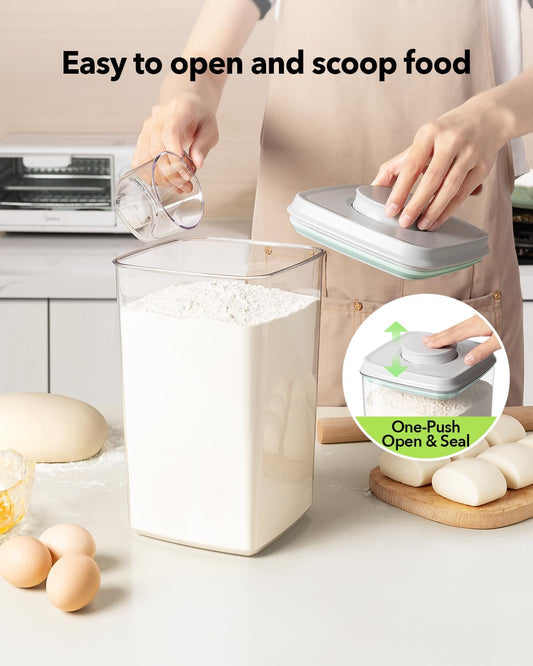 Ankou Food Storage Containers Pop Airtight Food Storage Containers with Lids for Kitchen Pantry Organizing Cereal Snack Flour Sugar Coffee Spaghetti Stackable - 8 Pcs (1.2, 2.0, 2.7, 3.3qt)*2
