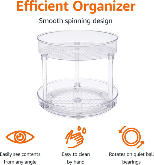 Amazon Basics 2 Tier Lazy Susan Turntable Organizer, 9" Diameter, 2-Pack, Clear