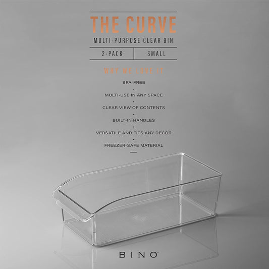 BINO | Plastic Storage Bins, Small | THE CURVE COLLECTION | Multi-Use Organizer Bins | Storage Containers Kitchen, Pantry and Home Organization | Fridge Organizers | Pantry Organization