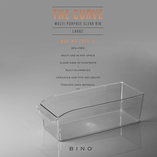 BINO | Plastic Storage Bins, Large | THE CURVE COLLECTION | Multi-Use Fridge / Freezer Organizer | Built-In Handle | BPA-Free | Pantry and Home Organization