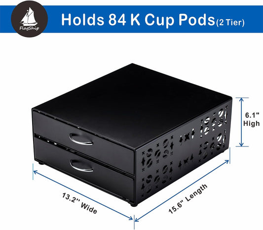 FlagShip K Cup Organizer Drawer 2 Tier Coffee Pod Holder for Keurig Pod Holder Save Space Countertop Kitchen (84 Pods Capacity)