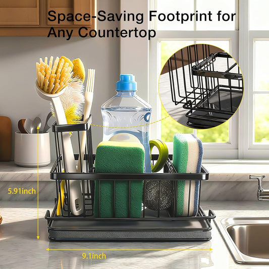 Sponge Holder for Kitchen Sink, Space-Saving Sink Caddy with Brush Holder, Kitchen Countertop Organizers and Storage Essentials