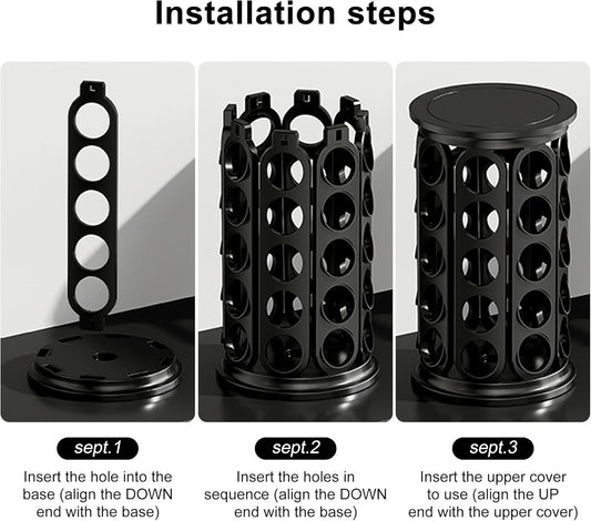 CEHNCEH Coffee Pod Carousel Organizer: Compatible with 40 Keurig K-Cup Pods, Large Compacity Coffee Capsule Holder, NEW Modern Design, Home or Office Kitchen Counter Organizer(Black)