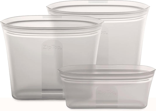Zip Top Reusable Food Storage Bags | Small Dish [Frost] | Silicone Meal Prep Container | Microwave, Dishwasher and Freezer Safe | Made in the USA