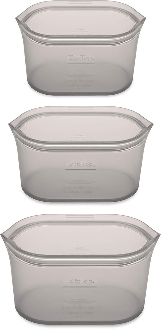 Zip Top Reusable Food Storage Bags | 3 Dish Set [Gray] | Silicone Meal Prep Container | Microwave, Dishwasher and Freezer Safe | Made in the USA