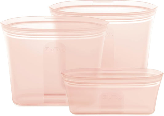Zip Top Reusable Food Storage Bags | 3 Bag Set [Peach] - 2 Sandwich, 1 Snack | Silicone Meal Prep Container | Microwave, Dishwasher and Freezer Safe | Made in the USA