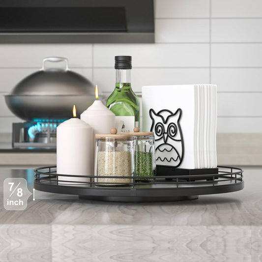 18" Oak Wooden Lazy Susan Turntable for Dining Table, Large Round Lazy Susans Organizer for Kitchen Countertop, Tabletop 360°Rotating Tray for Spice Organization and Storage Black Home Decor