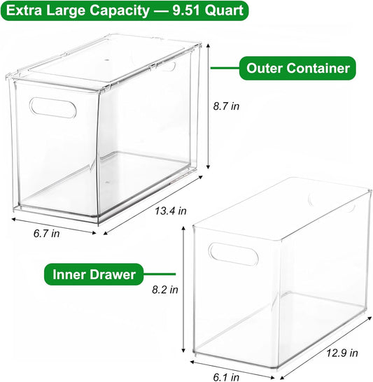 Taiuloo Clear Stackable Storage Drawers - 9.51 Quart Large Plastic Organizer Bins with Pull-Out Drawer, Kitchen Fridge, Bathroom Vanity & Pantry Cabinet Organization