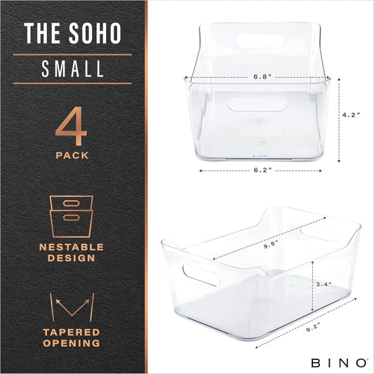 BINO | Plastic Organizer Bins, Small - 4 Pack | The SOHO Collection | Multi-Use Plastic Bin | Pantry & Freezer Organizer Bin | Storage Containers | Bins for Home & Kitchen Org