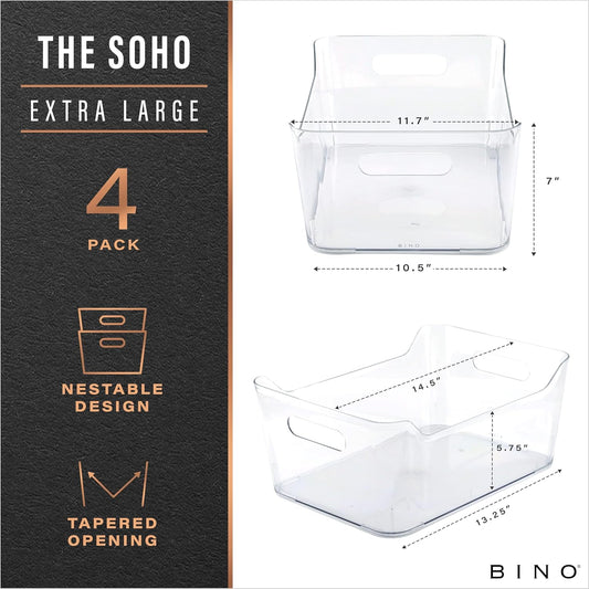BINO | Plastic Organizer Bins, X-Large - 4 Pack | The SOHO Collection | Multi-Use Organizer Bins | Pantry & Freezer Bin | Plastic Storage Containers | Bin for Home & Kitchen Org