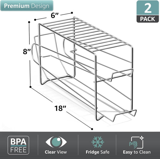 Sorbus Soda Can Rack Beverage Dispenser 12 Can Dispenser Organizer for Refrigerator (2 Pack, Silver)