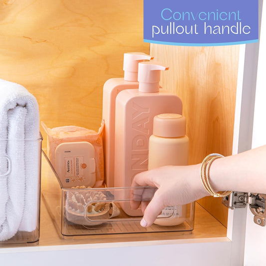 Plastic Food Storage Clear Container Bin with Handles for Organizing Kitchen, Pantry, Refrigerator, Freezer, Pantry, Cabinet, Closet, Bathroom. 10"X4"3"
