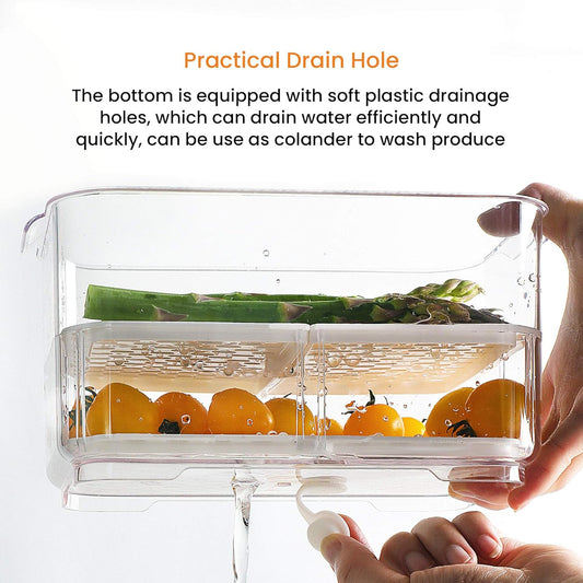 vacane Produce Saver with Lids, 2 Piece Fruit Vegetable Storage Container with Vents Stackable Fridge Drawers Organizer Salad Lettuce Keeper For Refrigerator,Bpa-free Fresh Keeper,5.7L&2.8L