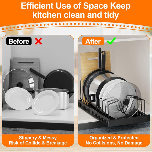FLSEPAMB Pan Organizer - Adjustable Lid Organizer for Kitchen, Heavy Duty Pot Lid Organizer, Under Sink, Drawer, Pantry Storage