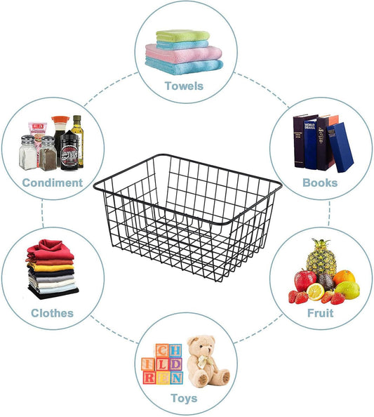 【Extra Large】Wire Kitchen Storage Basket 4 Packs,Perfect Pantry Organization Accessories Baskets,Laundry,Suitable for Countertop, Kitchen, Bedroom, Bathroom,Black