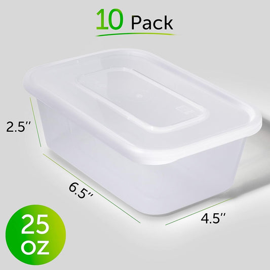 PrepNaturals 10 Pack Meal Prep Containers - 10 Pack of 25 Oz 100% BPA-free Plastic Food Storage Containers with Lids - Reusable Plastic Containers with Lids - Dishwasher Safe Lunch Containers