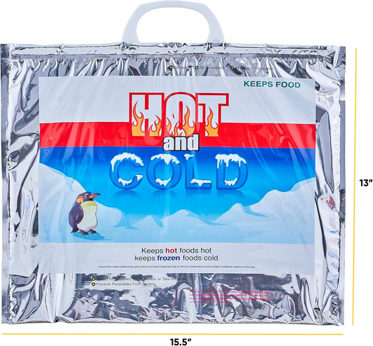 Superio Hot and Cold Insulated Bags for Food Delivery, Grocery Shopping Bags, Food Storage for Hot and Frozen Food for Travel, Disposable Cooler Bag, Reinforced Thermal Lunch Bag (10, 15.5"x13")