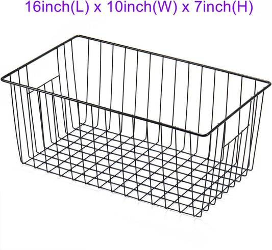 16inch Freezer Wire Storage Organizer Baskets, Household Refrigerator Bin with Built-in Handles for Cabinet, Pantry, Closet, Bedroom