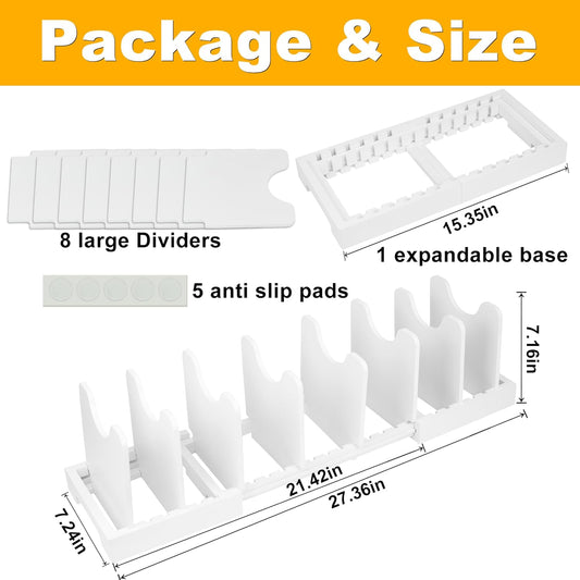 MinBoo Bamboo Expandable Pot Lid Organizer Pot Lid Holder, Pot and Pan Organizer Drawer Organizer for Pot Lids, Adjustable Dividers for Kitchen Cabinet Organizers and Storage,White,Large
