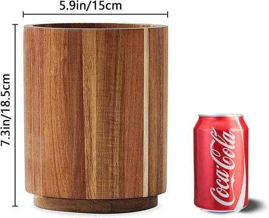 Acacia Wood Utensil Holder for Kitchen Counter, 360° Rotating 7.3" Large Wooden Utensil Holder,Kitchen Utensil Crock for Countertop,Cooking Utensil Storage Organizer,Farmhouse Kitchen Decor