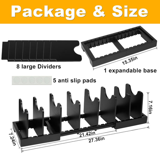MinBoo Bamboo Expandable Pot Lid Organizer Pot Lid Holder, Pot and Pan Organizer Drawer Organizer for Pot Lids, Adjustable Dividers for Kitchen Cabinet Organizers and Storage,Black,Large