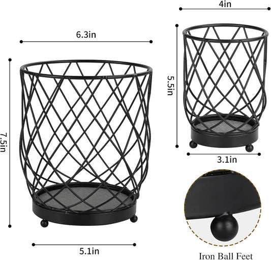 MACEVIA Utensil Holder for Kitchen Counter, Black Metal Organizer with Diatomaceous Earth Base, 7.5" + 5.4", Countertop Storage for Spoons,Spatulas and Cooking Utensils,Set of 2