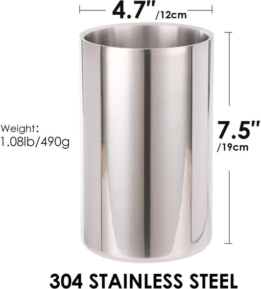 Double Wall Utensil Holder - 304 Stainless Steel Sleek Kitchen Utensil Holder for Countertop, Spatula Spoon Storage Organizer, Large Cooking Utensil Caddy Counter, Shining Utensil Crock, Mirror Polish