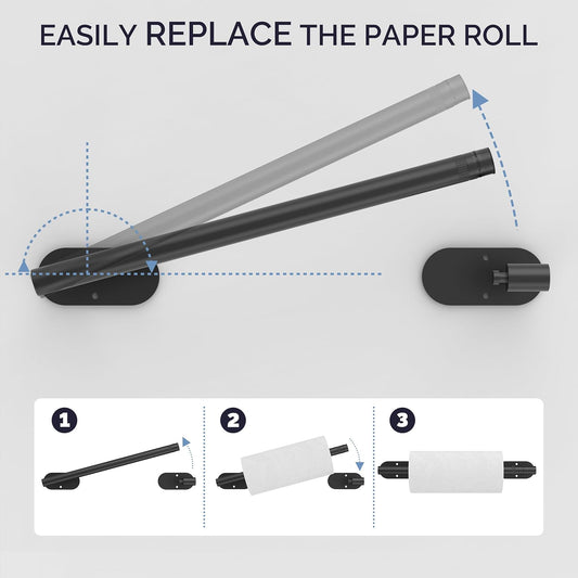 Black Paper Towel Holder Under Cabinet, Self Adhesive or Wall Mounted SUS304 Stainless Steel Paper Towel Holder for Kitchen, Bathroom, Farmhouse, Barbecue and Laundry (Matte Black)